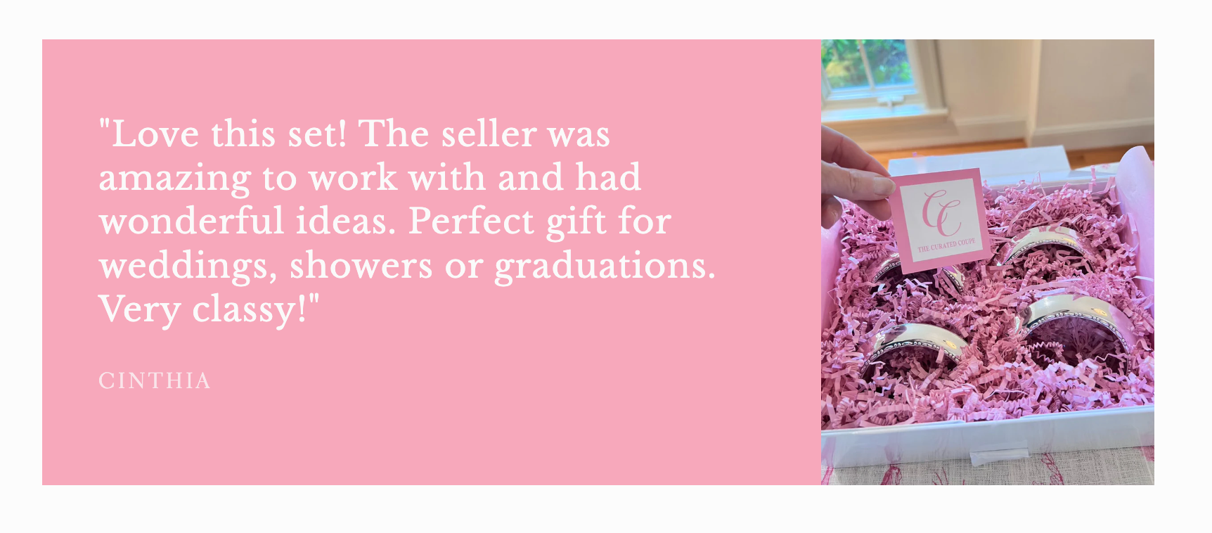 "Love this set! The seller was amazing to work with and had wonderful ideas. Perfect gift for weddings, showers or graduations. Very classy!"