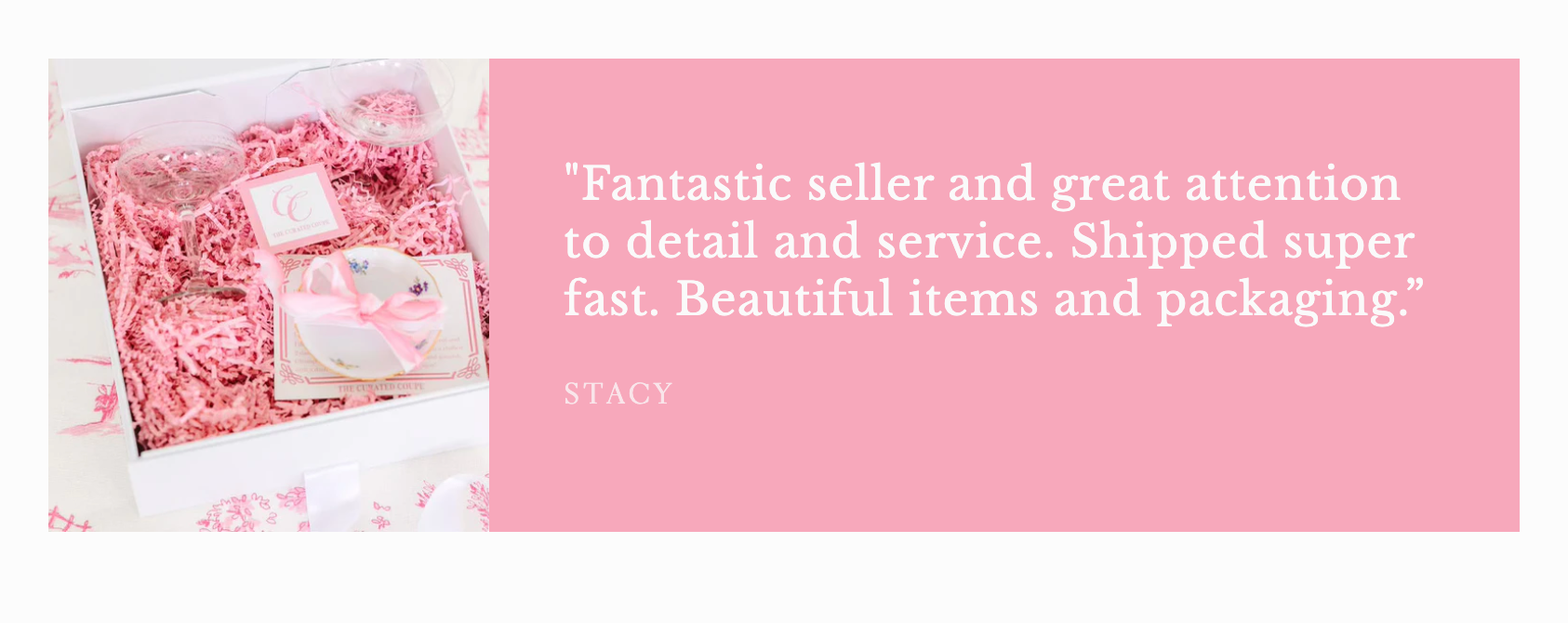 "Fantastic seller and great attention to detail and service. Shipped super fast. Beautiful items and packaging.”