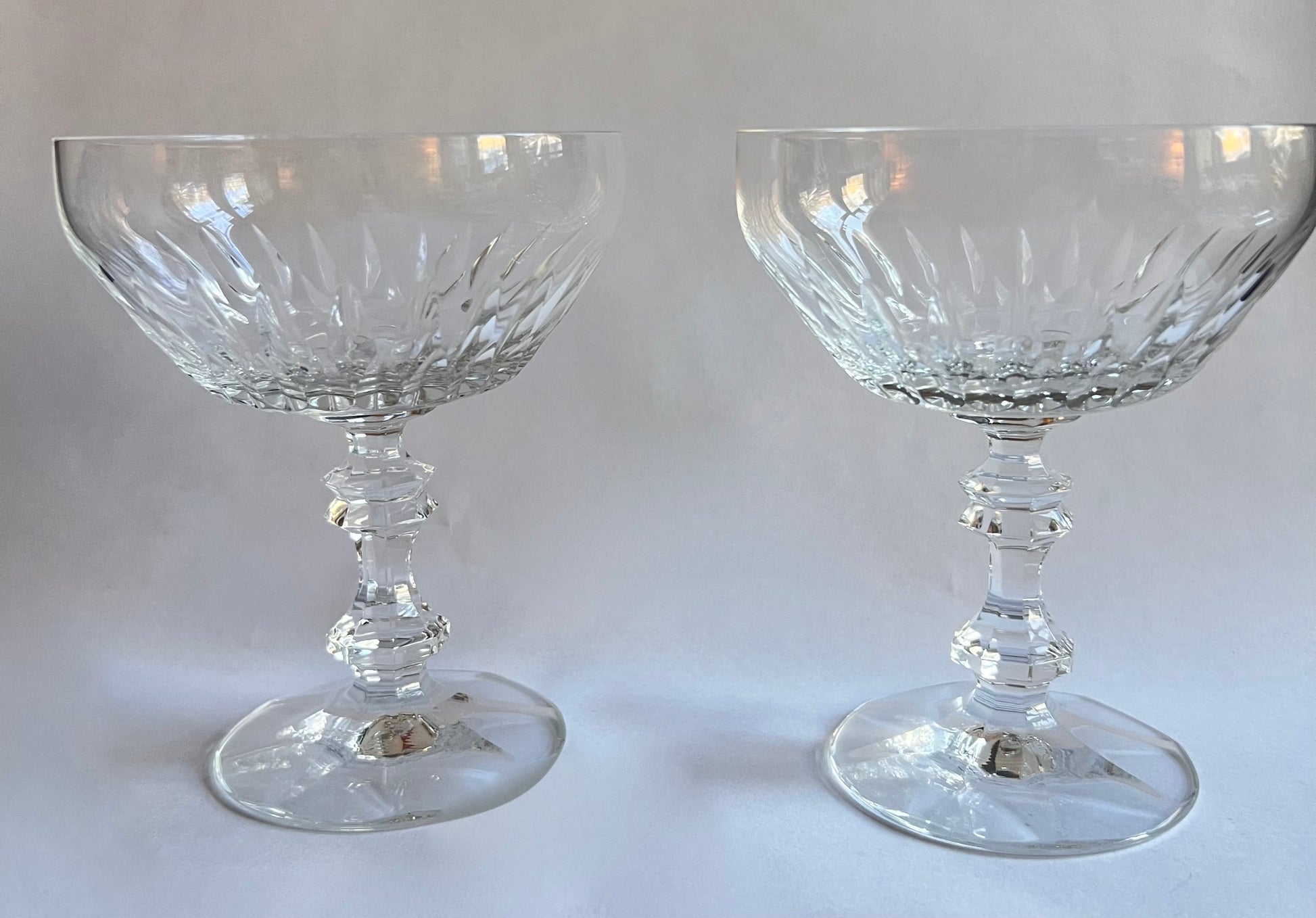 This cocktail collection gift features two heavy vintage crystal coupes with a chunky stemmed detail.